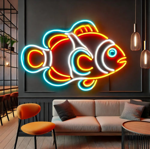 Clownfish neon sign, clown fish neon light, Nemo neon sign, clownfish LED sign, aquarium neon sign, tropical fish neon light, ocean theme neon sign, fish tank neon light, orange fish neon sign, sea life neon sign