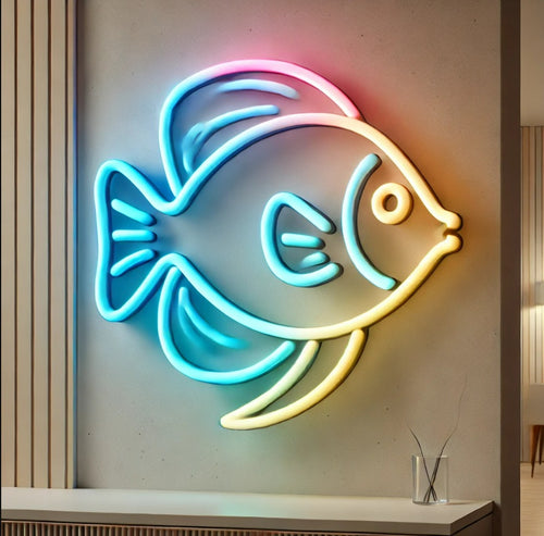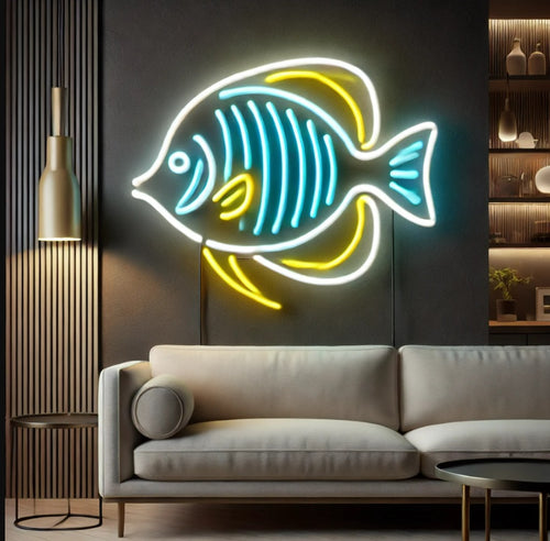 Tropical fish neon sign, neon tropical fish light, tropical fish LED sign, neon aquarium sign, glowing tropical fish sign, neon fish tank light, exotic fish neon sign, colorful fish neon light, neon reef fish sign, ocean fish neon sign