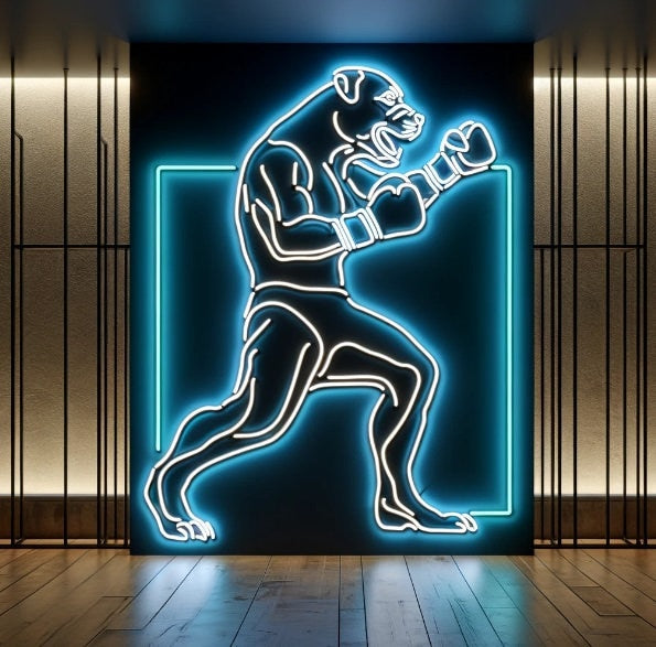 Neon bulldog sign, Bulldog neon light, Boxer bulldog neon sign, Neon silhouette bulldog with boxing gloves, Neon pet store sign