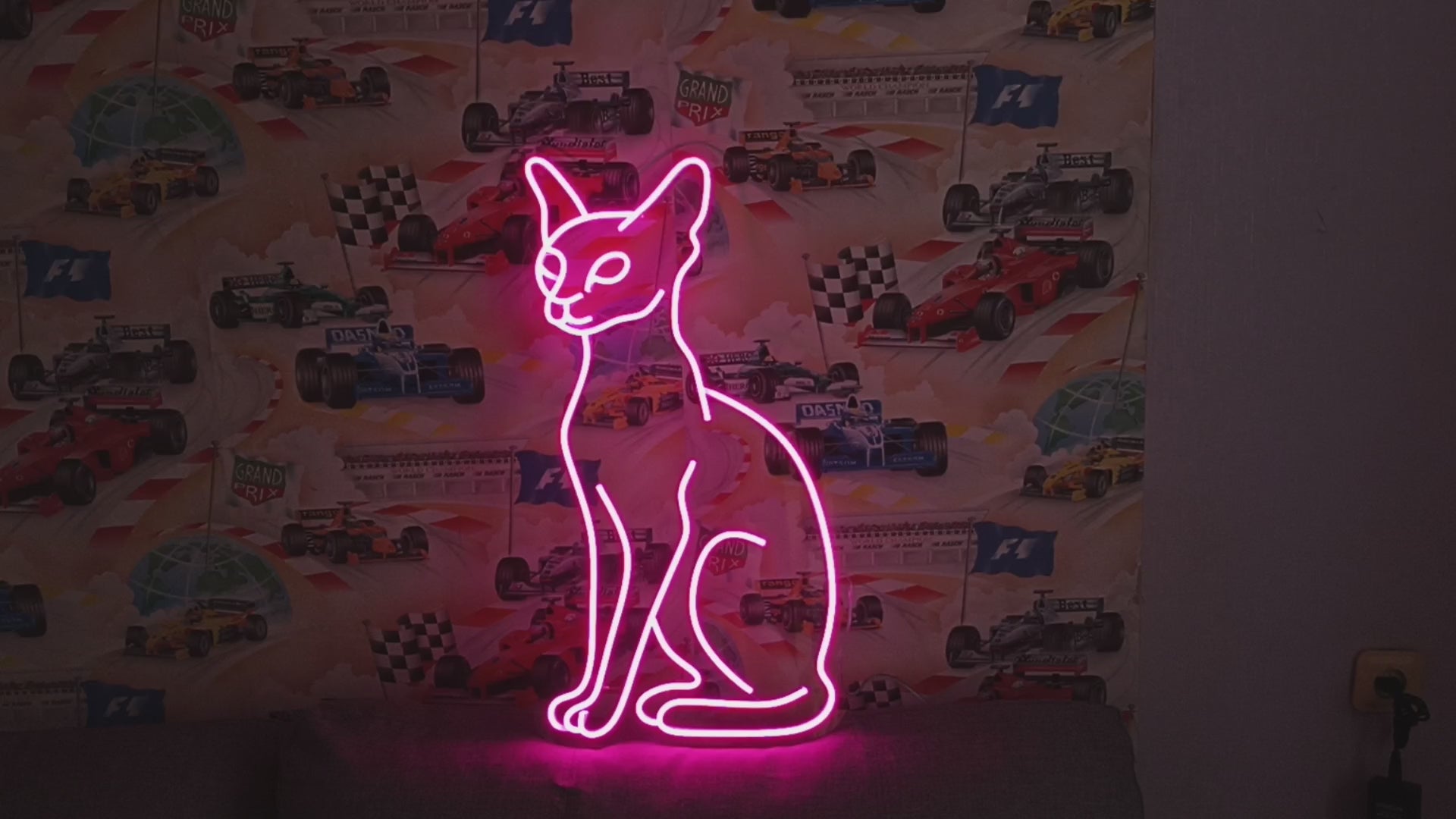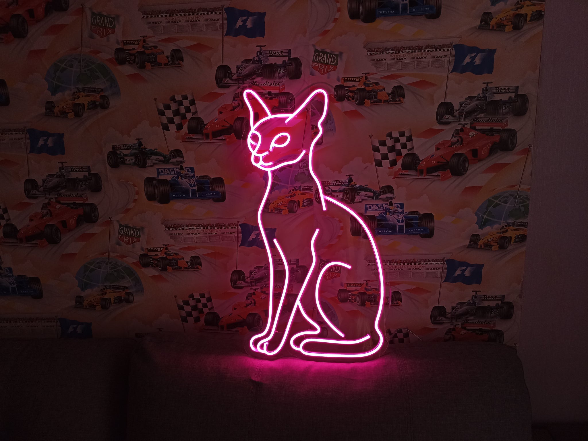 Sphynx Cat Neon Sign – Minimalist Egyptian Cat Wall Light – Modern Hairless Pet Decor – Glowing Feline Line Art for Cat Lovers