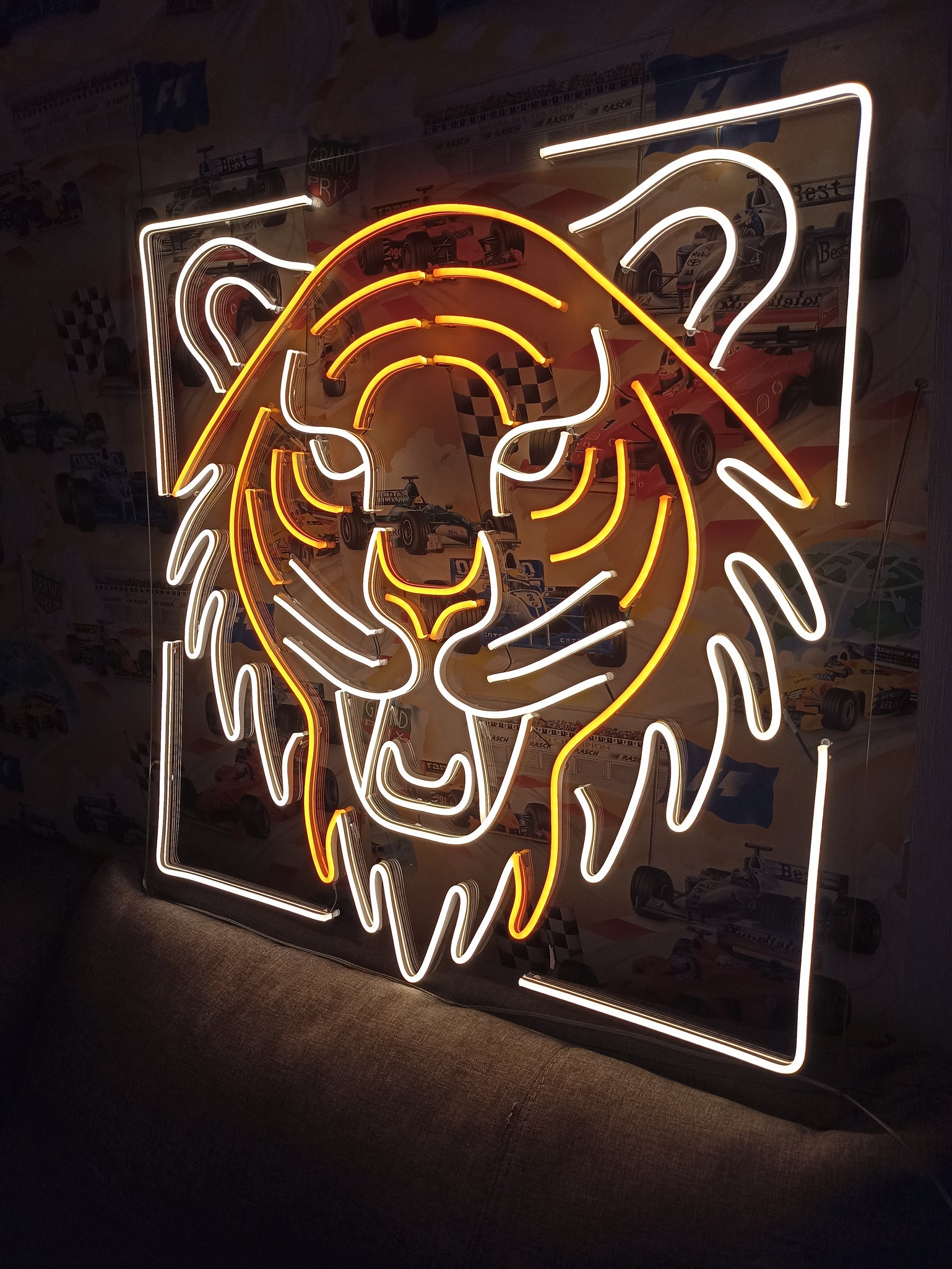 Neon Tiger, Tiger head Neon Sign, Anime LED Tiger neon lights sign, saber-toothed tiger neon sign, tiger's head on fire neon sign, tiger
